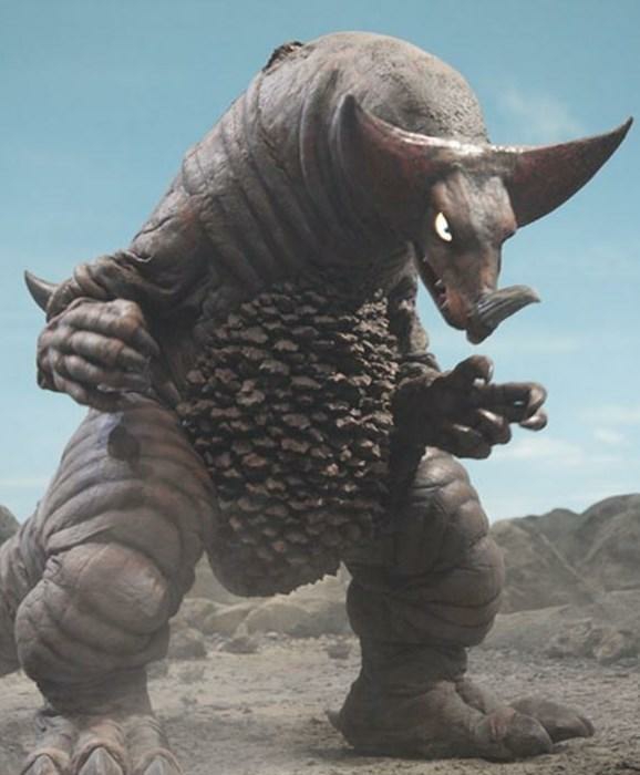 最初的个体发现是一亿五千万年前,生活在南太平洋乔森岛的古代恐龙的幸存者。新月形的角、长长的尾巴、粗壮的四肢是其特征。能够在地底快速移动,具有极强的生命力,被切断尾巴后进入暴走状态。和初代奥特曼的对决中以强大的战斗力轻松将初代奥特曼打倒在地!