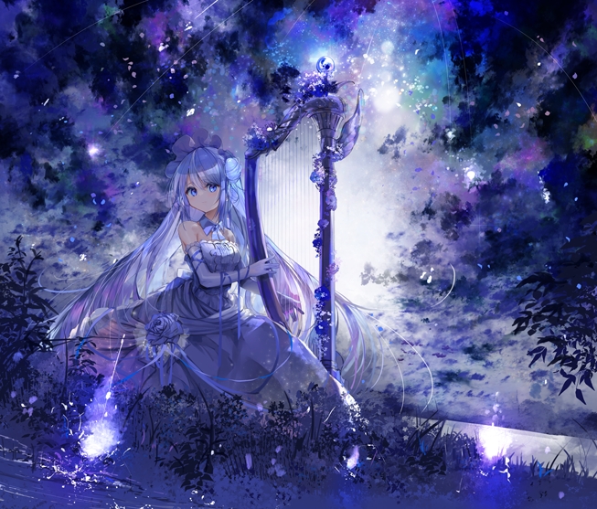 “我是你的使者——暗使。”少女的身旁出现一个竖琴,开始演奏起来。