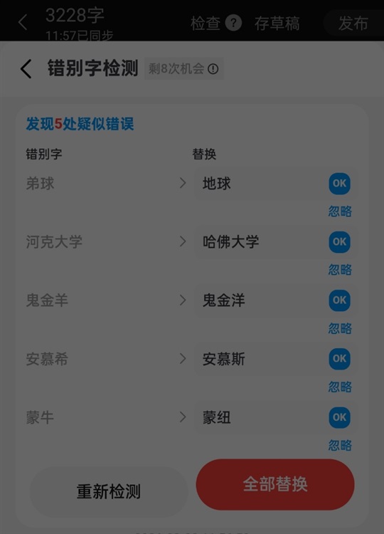 ps:菠萝包神奇的错字检测