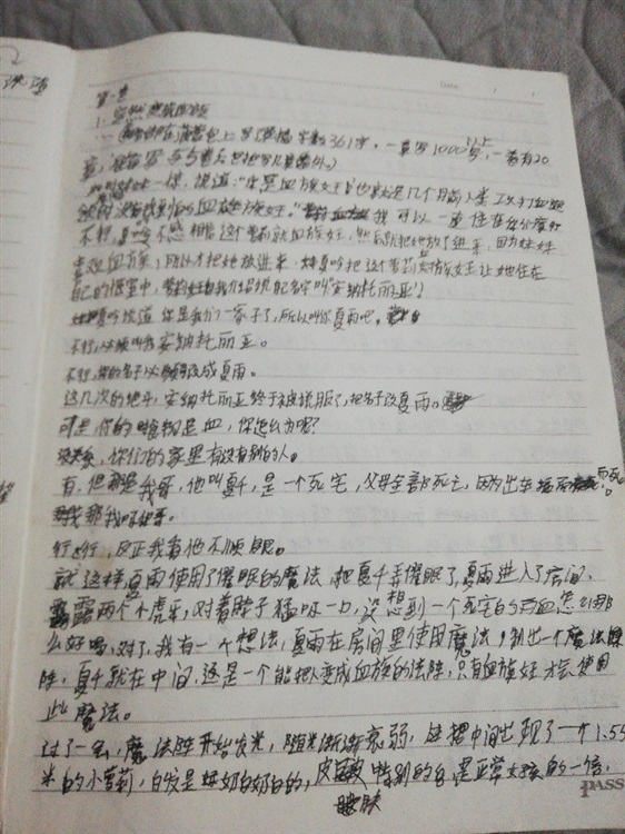 大家好,我是本书作者,是一个初一学生,草稿是我和我同学一起在课上偷偷的在课堂上交流,然后我和其他班的学生一起想,你们现在看到的小说,是我在老师发的本子,这本子是奖,全班47人,一位同学全身关节有问题,所以说现在班里有46人,46人中,只有20人拿到奖,我所在的学校是临沂实验中学,初一,7.3班,我的梦想就是想当一名二次元作者。