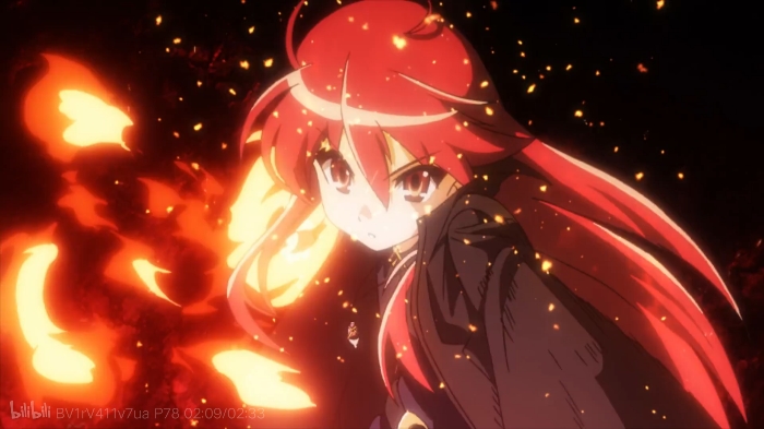 夏娜一气之下挣脱了悠二的手向上飞去,于刀锋的尖端凝聚炎之力。
