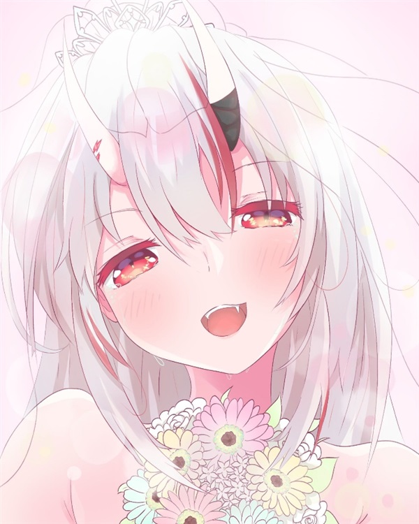 银白色的长发在月夜下剔透明亮,赤红色的瞳孔里闪着温柔的笑意。