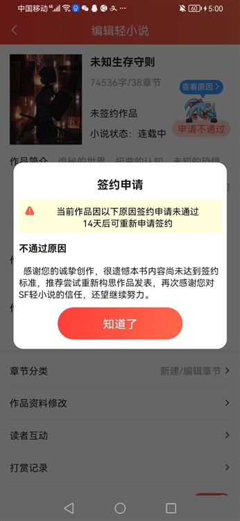 本来几天前这本书达到了要求,我就兴致冲冲地申请了签约。