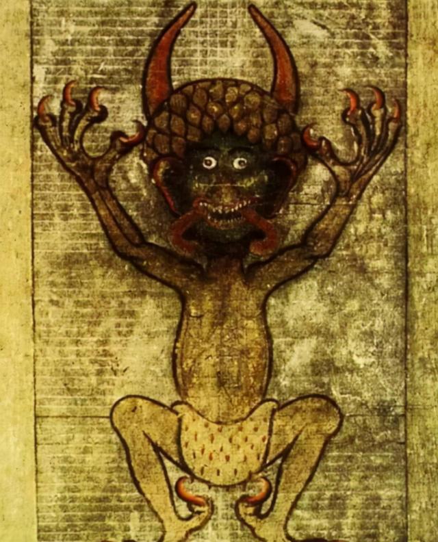 魔鬼圣经这本书的第一页有一个大大的魔鬼画像,西方的魔鬼形象都是撒旦,但是撒旦的长得是很好看的,但是画像上的魔鬼,面目狰狞,浑身都是鳞片,并且头上还有两个角,手看起来更像爪子。