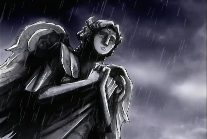 女神雕像望着远方,似乎在祈祷着什么……