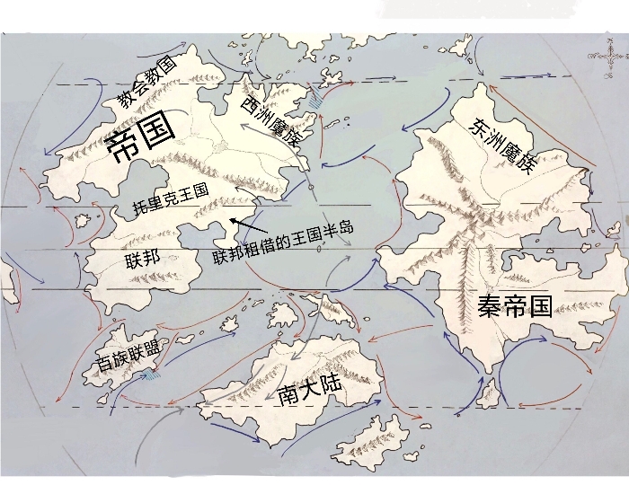 如图,东洲魔族与刚刚统一的秦帝国以最北的v形山脉相隔,战争不断。