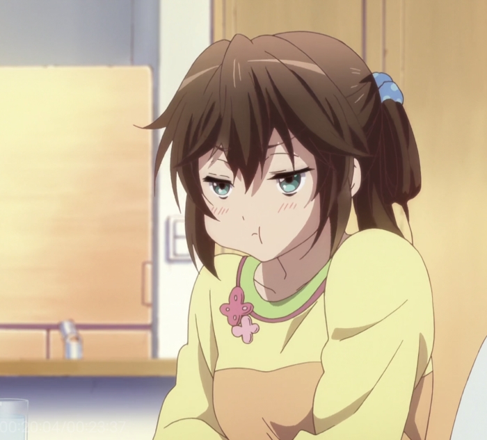 勇太伸手挡住额头,免得又被梦叶用剑打。