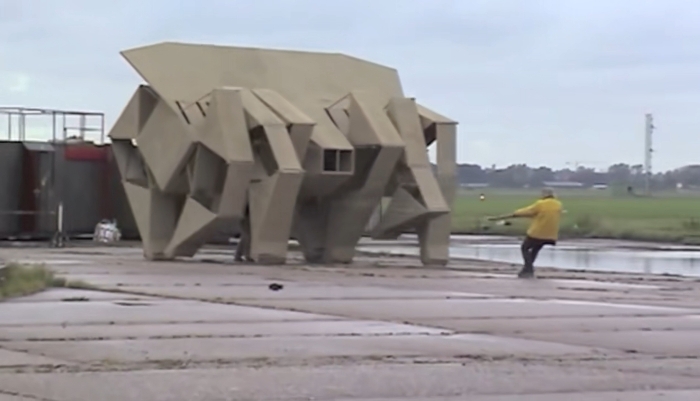 仿佛掉入了某个荷兰艺术家(theo jansen)的风力仿生作品展,纸张组成的三角构造在风力中化为延绵不绝的浪花。