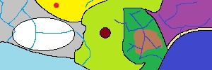 地图中间浅绿色区域是明月草原草原内部的深红色区域就是明月村,明月草原右边的绿色区域就是落日森林森林里褐色的那部分就是被莉伊毁了的区域,再右边的紫色区域是王国,右下的深蓝色区域是神秘海洋从神秘海洋里分出来的深蓝色线条就是河流海洋上面的那一层淡黄色是巨浪沙滩,左边的黄色区域是风暴沙漠沙漠内部的红色区域是黑曜火山,灰色区域是灰石山脉山脉内部的白色区域是帝国,左下的淡蓝色区域是死寂冰川从冰川里分支出去的淡蓝色线条是融化成了水的冰形成的河流