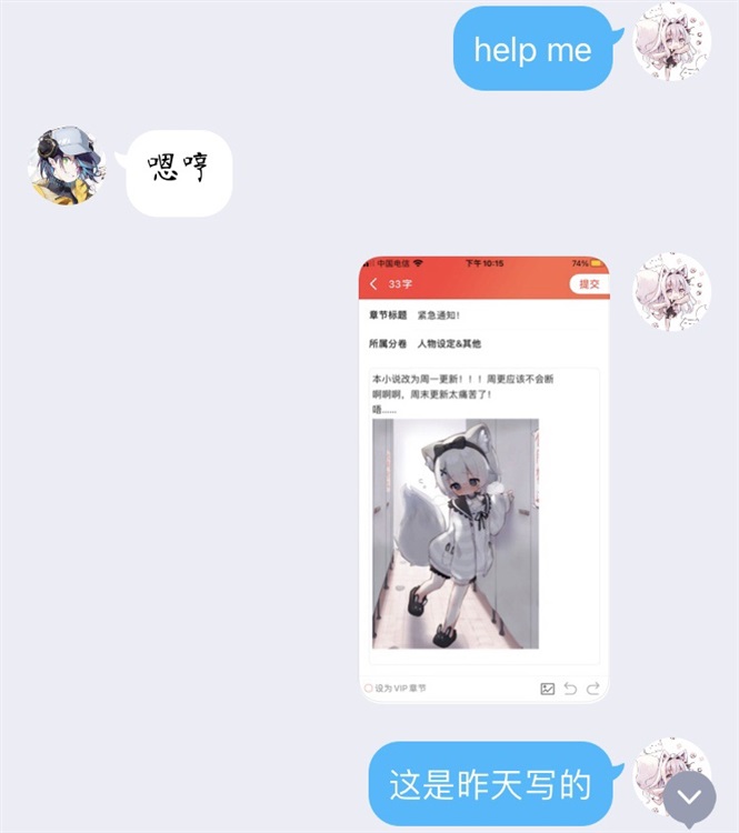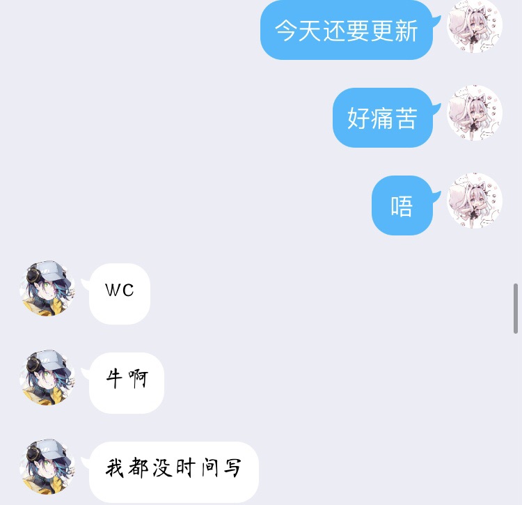 PS:恭喜本小说一万字啦!芜湖!这里分享一下我的日常 聊天(黄色部分已删剪)