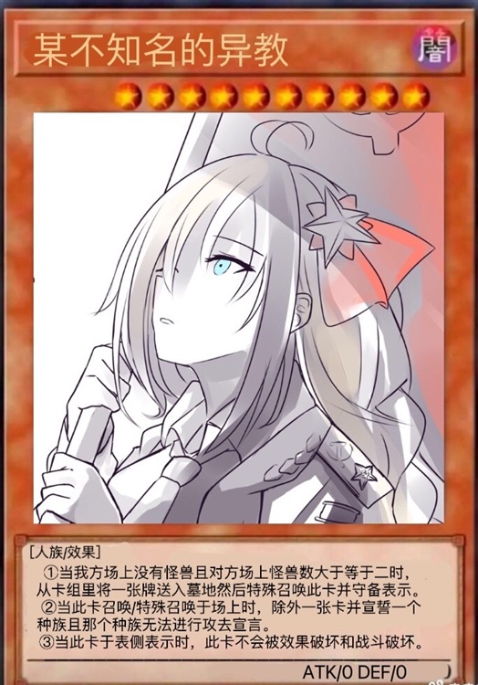 “哦,忘说了「某不知名的异教」于表侧表示时,这张卡不会被效果破坏和战斗破坏,也就是说这张卡是无敌的!”