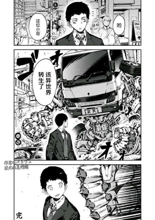 无边的黑暗之中,点亮着几盏路灯,青年手插在口袋里,吹着口哨,大步往家里走,四处寂静无声,只有偶尔车从旁边驶过的声音,就在这时 一辆长着双手双脚的卡车,突然冲了出来,对着青年喊到“该穿越异世界了”青年一脸惊讶,茫然与无措,其中还有一丝疑惑