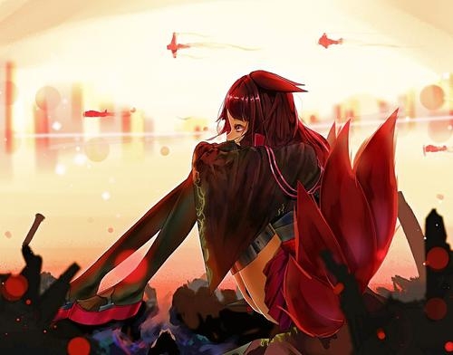 巨大的狐尾慢慢的笼了起来,将自己和赤城包裹在一个小空间里。