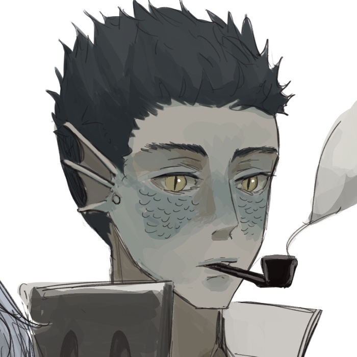 生平:一个体表布满鳞片,狗啃式刘海的的黑发中年男性,脾气有点糟,烟瘾很大。自从登水子加入调查组,就经常故意刁难她,虽然登水子一点都不信他说的那些丰功伟绩。平时容易和其他队长因为无关紧要的分歧吵架,但是很有责任心。