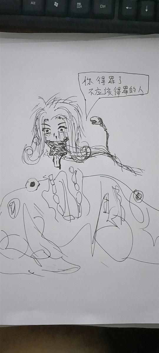 一把诡异而阴阳怪气的声音在小雀斑的耳边蓦然响起,小雀斑精神奔溃地把眼珠转向声音的来源,竟看到了无数的血肉细丝在自己的身后扭动着,而其中的一小撮扭结聚合在了一起,化作了一颗异形的头颅——这颗染血的异形头颅覆盖着光滑的椭圆形的骨甲,并没有五官,但只有一张无唇的嘴巴裸露着吓人的牙齿,发出着恐怖的声音宣示着死亡,这就是这颗只有嘴巴的异形头颅的唯一功能。