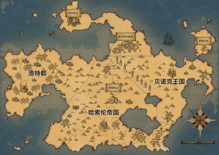 哈索伦八世洛根•刚赫,上任的时候全国上下已经乱作一团,虽然其力挽狂澜,但还是丢掉了大量领土,收缩成了今天这样。而上面提到的贝诺克和洛特,分别建立了贝诺克王国,和洛特都。