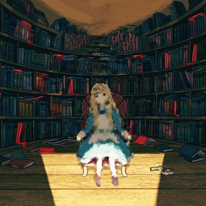 明明就在眼前,周围一切都可以看清,书架上的装饰,陈列的书籍,蜡烛燃烧的火焰,蜡烛油流下烛台,甚至连这个人在看什么书我也看到清,那是一本牛皮封面的书,黄色的纸张,恶趣味的用红色墨水写了歪歪曲曲的字,内容也是意义不明。