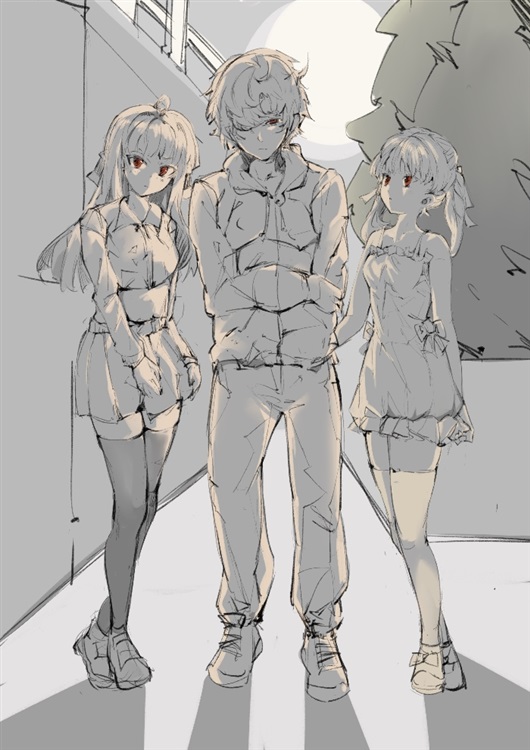 封面自绘,两位妹妹和男主