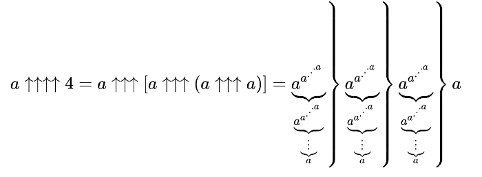 然后可以用高德纳箭头来到达第一个最小的大数——葛立恆数。