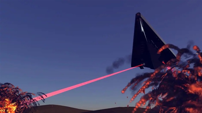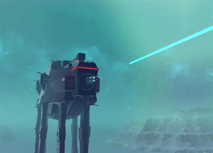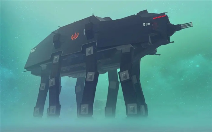 将战舰级别的火力搬到陆战平台上是这东西的主要设计思路,因此其脊背上固定了一门口径7000mm的裂解光束系统,其全力输出时能打出3000-5000万吨TNT当量——足够一击抹除整座城市的同时也有极为惊人的耗电量,因此不需要太多能源的步行机底盘成了承载这门巨炮的唯一可行选择。