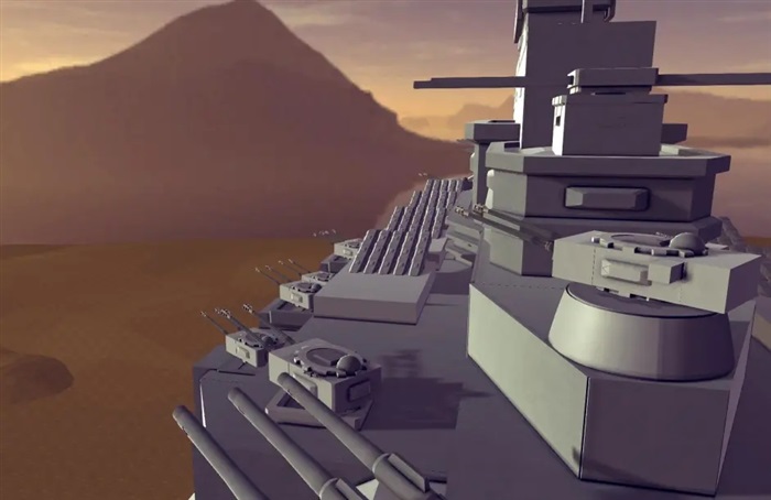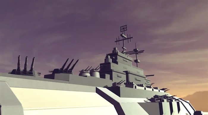 509米长的楔形舰体和上层建筑上分布了海量的76mm、37mm高射炮和导弹系统,提供了针对各种目标的强力防御(我自己建模的时候没做那么细,要不然CPU真该糊了)