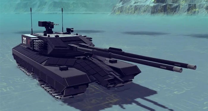 一台配备了140mm电磁/等离子两用炮的80吨级重型主战坦克,注意炮口的装置并不是制退器,而是等离子压缩器。