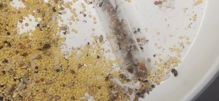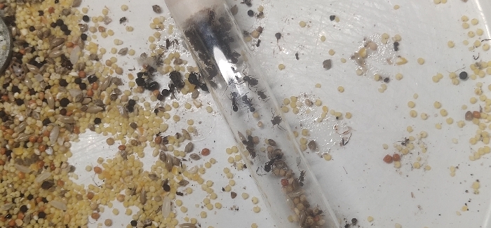 让你们看看我养的一窝国产须蚁,就是那个看守物资的品种。但这个是国产的叫东方收获蚁。也是很红。并且正在捕食蜘蛛