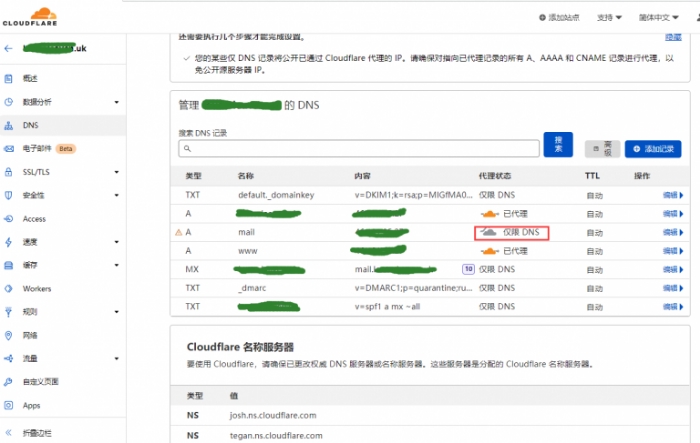 记得在mail的记录里 不要勾选 CDN的代理加速即可。 我们网站需要CDN的加速,但是我们收信是不需要的。