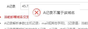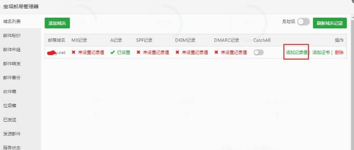 2. 接着去你的域名商那边去配置/解析域名,添加一条A记录指向你的服务器的IP,宝塔邮局里的提示你如何操作,如图: