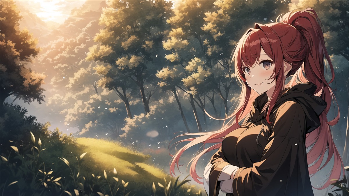 她酒红色的长发似乎带有果味酒香,是那种紫葡萄在微热阳光烘烤下发出的令人陶醉的温暖味道。