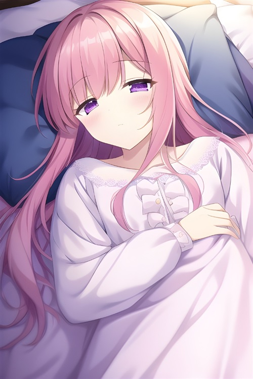 念可粉发散披,睫毛浓密曲卷,如同薄翼般轻轻扇动着,鼻梁高挺有节奏地一呼一吸,睡衣领口敞开,露出白皙细腻的皮肤。