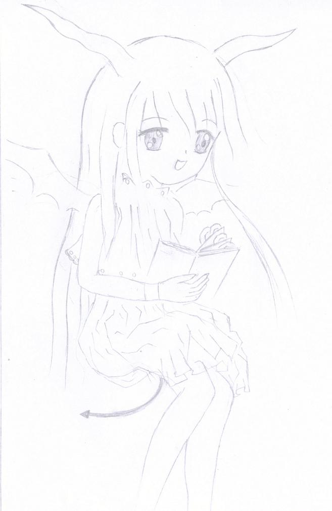 竣面前的美月虽然身穿着辉夜的校服,但背后漂亮的剪开了两条口子,口子上还绣有花边,使人误以为是有意作成的。翅膀刚好从口字里伸展开来,这样从外人的眼里看来,只要尾巴和翅膀别乱动,美月就只是一个cosplay恶魔的美少女高中生,辉夜这么宽松的校风,加上美月是个连跳3级的优等生,肯定不会有人责备的。