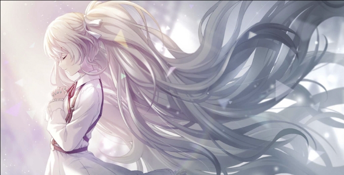 较显凌乱又不失其美感的双马尾平铺在床榻两侧,少女身着暗白色洛丽塔裙,双目闭阖,双手**放在胸前,玲珑身材之下,右腿着过膝黑丝,左腿却尽显少女肌肤妍洁,更是赤着一只娇纤嫩足,灰白交织之间,或许只有领口处系上的红色翻花绳更能表露少女内心的情感。