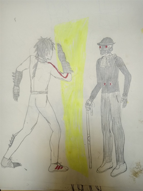 一手刀直接劈了下去结果他的周围突然出现了一圈半透明的发着金光墙壁他的手刀打在这块墙壁上,嗞——————手刀的伤害直接被转移到了龙一的身上当场的龙一的胸口上开了一条口子这时,他意识到这个家伙的能力是转移伤害,然后类别K一把掐住了龙一的脖子直接将刀甩在地上一脚踩着他说:“你再不完全变身的话你可就完蛋了让我来看看你的真面目吧,类别A龙一尾此时周围的人已经全部跑完了就立即变化出了完整的姿态,龙一伸长手上的利刃后直接砍向类别K结果发现根本打不到,打到的都是那道发光的半透明墙壁龙一被自己的攻击伤害到了很多次,接着类别K直接一拳下去,龙一当场就被一拳贯穿了,然后他就被一把扔到一边龙一当场就被打得现出了原型变回了人类姿态因为刚刚变身的原因衣服已经碎掉了此时的他趴在地上类别K俯视着他,这时类别K对龙一说:“以你现在的力量是打不过我的,我再问你一次,你是选择加入我复活伟大的邪神大人,还是继续与我为敌”。因为此时龙一对自己的能力还不是很熟悉,只知道自己可以伸长手臂的刀刃来攻击敌人,而现在,他面对的类别K能力似乎是转移一切攻击,现在对于他来说该怎么打破他的这套防御才是一个巨大的难题。正在思考时,类别K着拳头已经朝他打了过来,他反手一拳挡住,结果当场又被能力攻击到,被轰飞了出去,砰——————他刚爬起身,这时类别可已经来到他的面前了,类别可以对他说:“现在我问你,你是选择加入我,还是选择被封印?”龙一说:“难道说只要我加入你,你就可以放过我的同学,还有我吗?”类别K解除了阻挡的半透明墙壁后说:“哼,这是当然的了,现在说你答应了快说吧快说吧。”