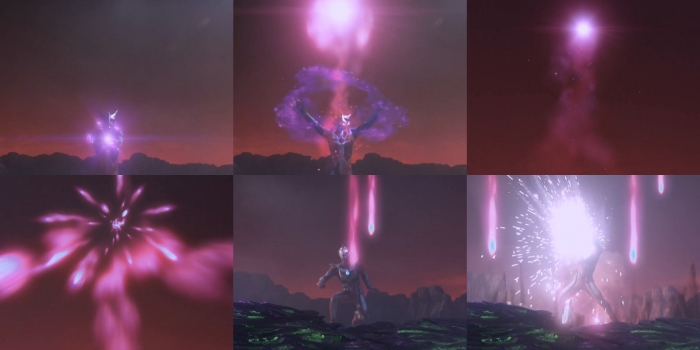 美塔领域,看起来就像一片荒凉的荒野,散发着奇特的光芒。美塔领域是由红色成年形态的奈克瑟斯奥特曼制造出来的从现实世界不能看见的不连续的亚空间。