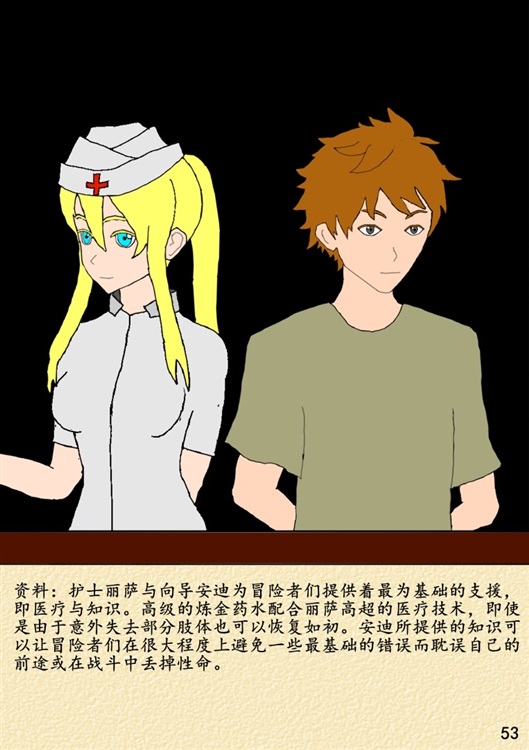 “一个陌生的面孔呢,你应该就是银手的新成员拉尔吧。在你成为可以独当一面的冒险者之前,我要教你一些身为冒险者所需知道的基本常识,这些知识很重要,也需要你在实战中逐渐的去理解、感悟。接下来我所说的话将关乎你日后的成长,所以请牢牢的记住哦。”