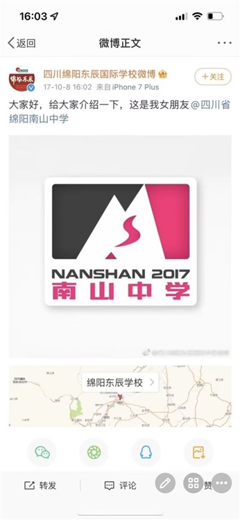 当然东辰这孙子还不忘嘲讽绵中(绵阳中学)一下,可把我乐呵了一阵,毕竟绵中和南山是这个城市最好的两所高中,该凑CP也应该是他俩,结果半路杀出个东辰。哈哈。:.゚ヽ(*´∀`)ノ゚.:。