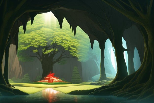 洞穴开始崩塌,水流已经消失了,只有那棵巨树依旧在那儿。