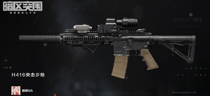 武器:一把HK416突击步枪和一把Five-seveN(57式)手枪(两把枪的武器枪体为二次元风格,当然,是汐芸找人画的)