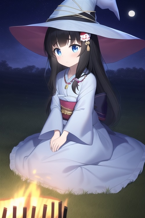 我坐在篝火旁,看着远方的月亮,思绪飘远了。