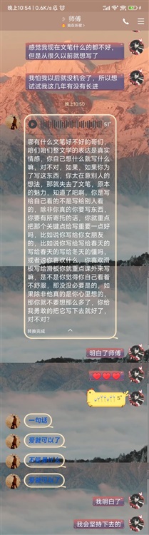 这几周里,在杰哥,邦邦,子豪,好多好多同学的鼓励下,我重新拿起了笔,告诉自己应该写点什么了,不然以后都没有机会了,但我还是忍不住在意别人的看法,会想迎合别人的想法,写他们想看的东西,直到威士杰先生的一番话点醒了我。