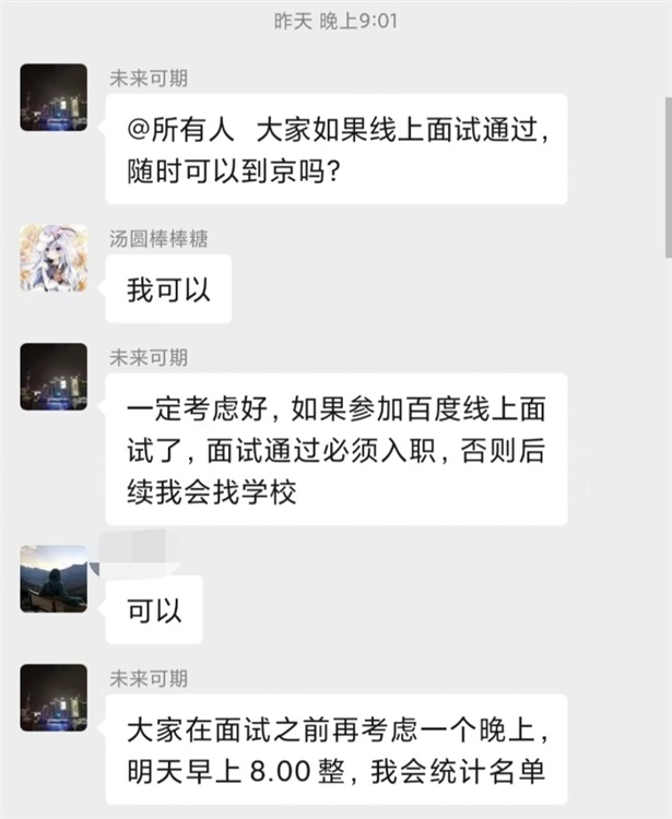 退群后不知道什么情况,只是听说一堆人跟着退群了,确实没有互相尊重,我等了一个星期来句面试过了必须入职,中途我周末还面了一家别的公司,还好我没被北京爷看上。挺奇怪的,要是每家公司都是面试过了必须入职,我不敢想,真有这么牛皮的公司吗?