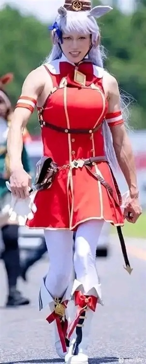 所有人都往那个方向看,霉神坐在一个身高两米多的高人脖子上,高人穿的非常卡哇伊!