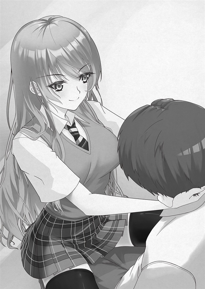 就在我精神不振的时候,一双包裹在黑色过膝袜中的修长美腿却在这时越过了我的腿间,一下子坐在了我身上。连同眼前隐藏在校服后的柔软巨物一起,与我维持着一上一下对视着的姿态。