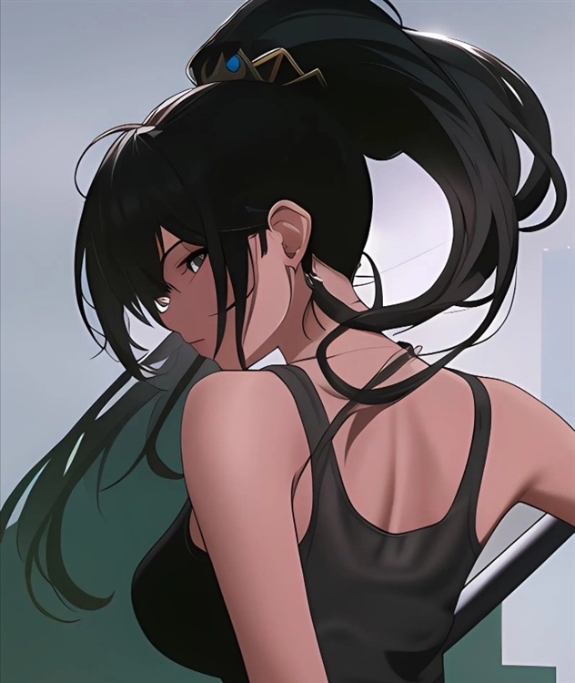 单马尾的她把显眼的光额头用刘海遮住,也藏起了极具特点的紧身背心,改成了一身骑手装束——黑色马甲、袖口带纽扣的宽松衬衣,还有适合行动的布制长裤与黑靴。