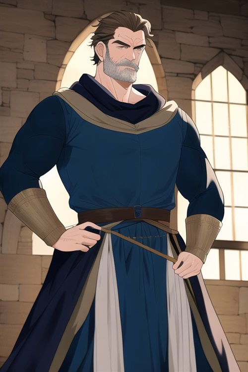 又是一个壮汉。这个魔法世界喜欢健身的人这么多吗?不过这一位看起来没有那么结实。看起来至少中年了,可能身体状况没有以前好了。