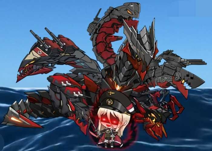 俾斯麦默不作声,直接完全展开了她的舰装,一只硕大的、无比帅气的狰狞黑红色机械龙出现在了三船的眼前。(如图所示)
