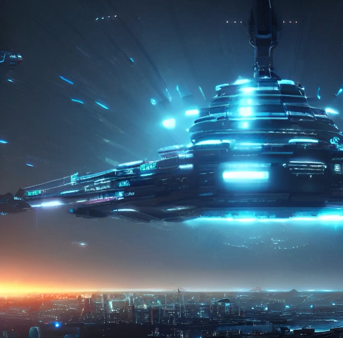 他逐渐取代了整个星空,取而代之的整个底部发出有规则闪烁的蓝光。