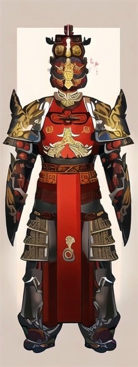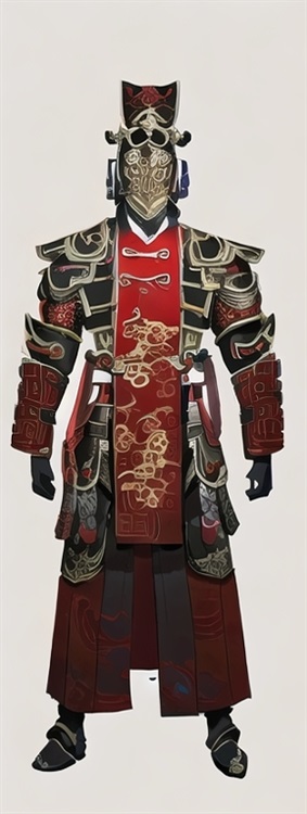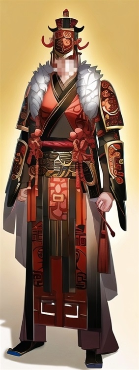 煌武帝国武官服饰正一品至正三品(只在朝堂上穿并不在战场上穿,上战场一般都穿中层武官甲胃但也会穿自己定制的甲胄):