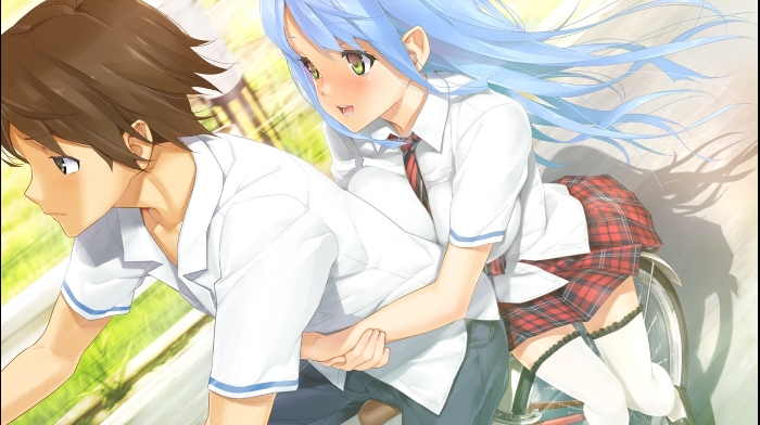 “呜哇——,感觉超棒的~”我骑着自行车,雫坐在后面环抱着我的腰,迎面吹来凉爽的晨风。